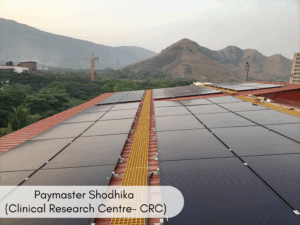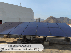 Phase 1: A total capacity of 326 kWp was installed at ACTREC on the rooftop of the Khanolkar Shodhika (Cancer Research Institute- CRI) and Paymaster Shodhika (Clinical Research Centre- CRC) buildings.
